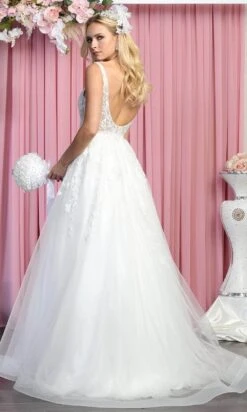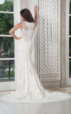Rachel Allan Bridal – M609 Lace Jewel Neck Sheath Dress With Train
