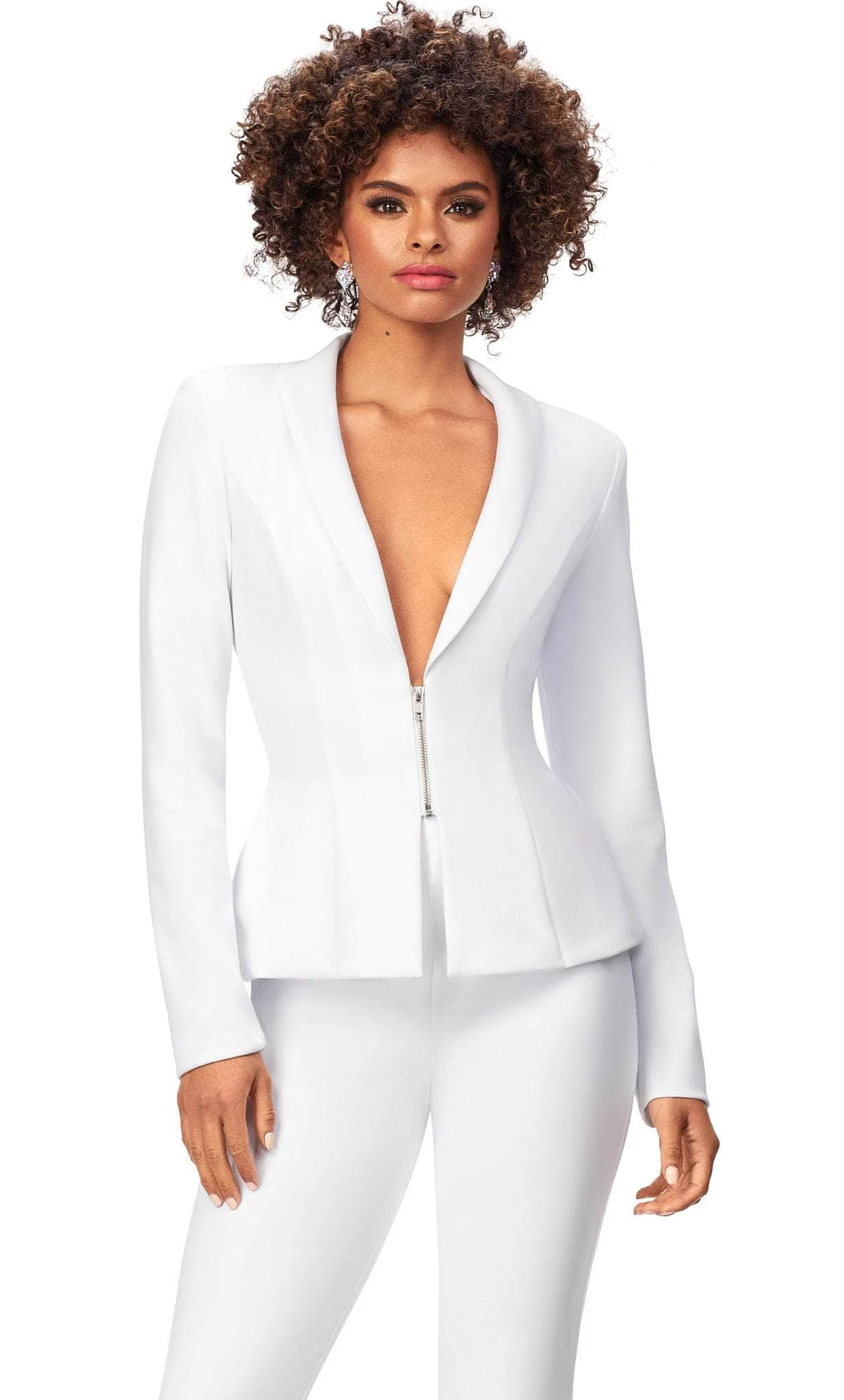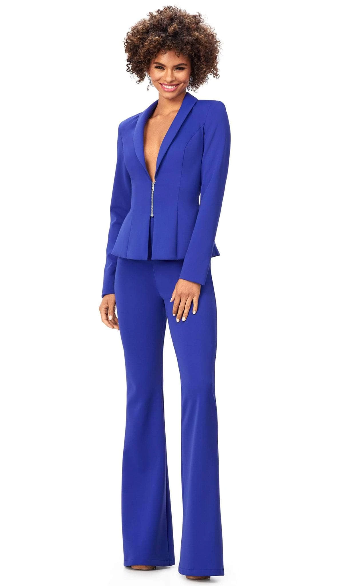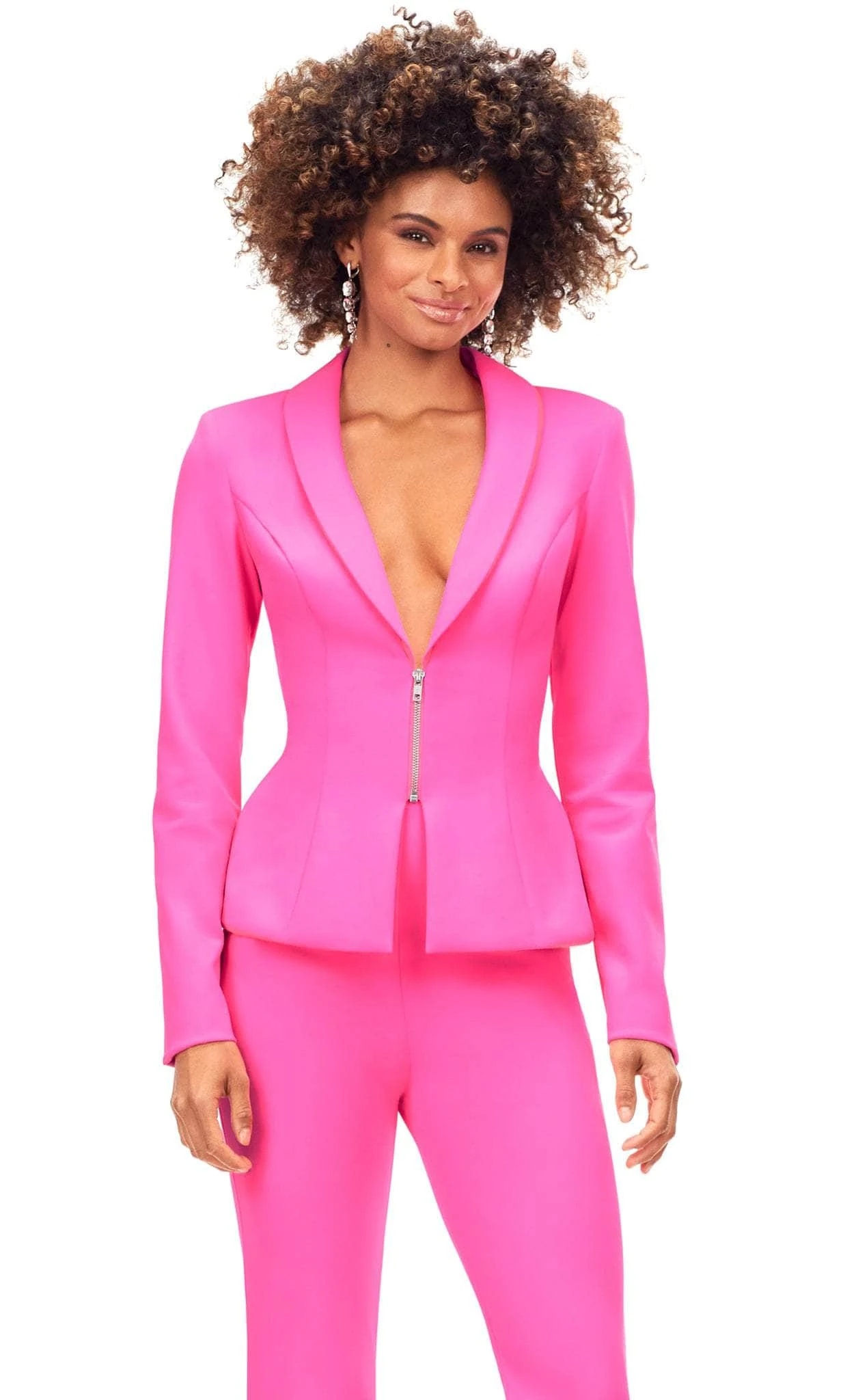 Make a spectacular impression in this Ashley Lauren 11225 design. Get ready to look more sophisticated in this two piece long sleeve pantsuit. This winning piece exudes elegance with its plunging v-neckline and a front metallic zipper for closure. Gorgeously tailored from scuba fabric. The wide-leg pants finish a full length hemline and the blazer has a full back. Look good and feel good with this ostentatious extravagant pantsuit from Ashley Lauren 11225 creation. Models are wearing Black, Hot Pink, Royal and White colors.