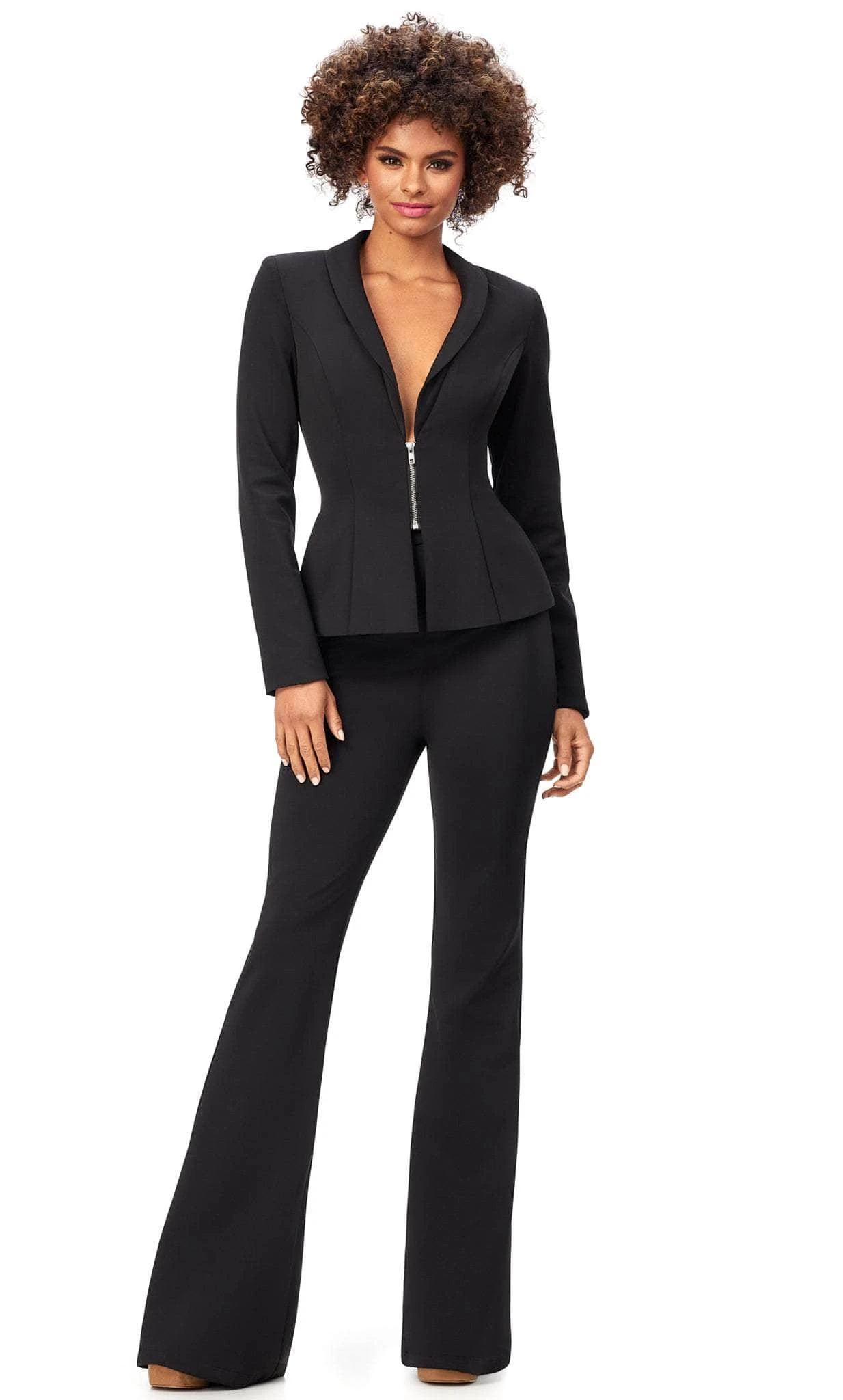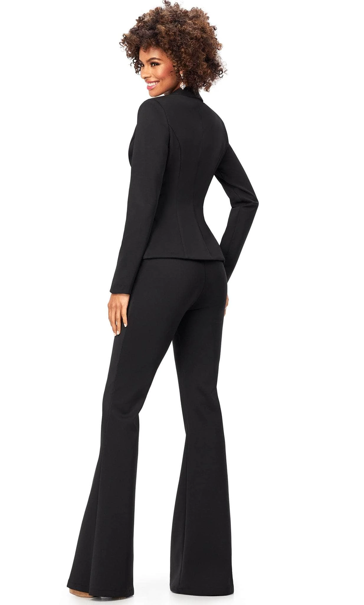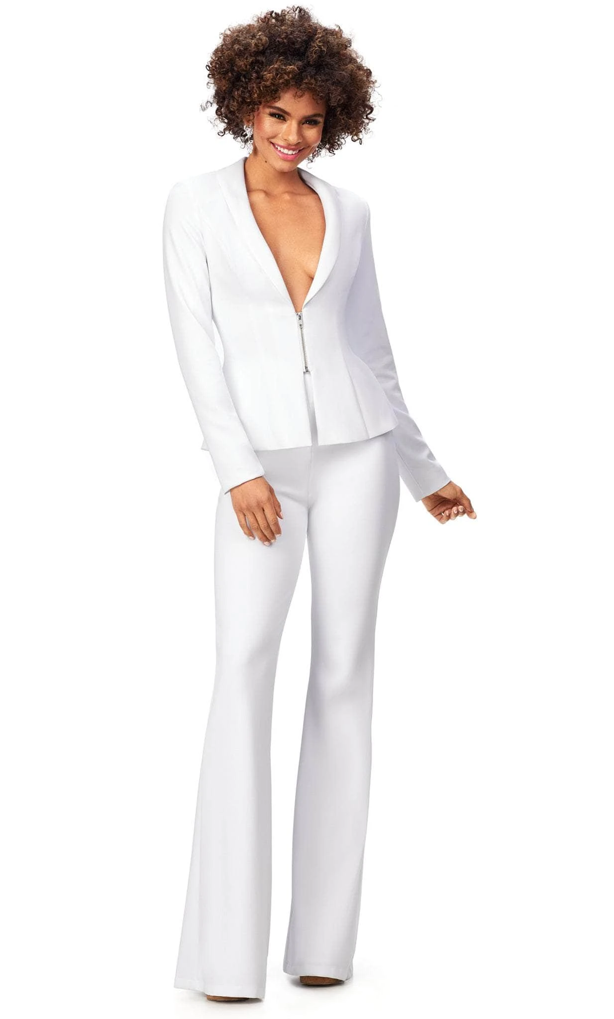 Make a spectacular impression in this Ashley Lauren 11225 design. Get ready to look more sophisticated in this two piece long sleeve pantsuit. This winning piece exudes elegance with its plunging v-neckline and a front metallic zipper for closure. Gorgeously tailored from scuba fabric. The wide-leg pants finish a full length hemline and the blazer has a full back. Look good and feel good with this ostentatious extravagant pantsuit from Ashley Lauren 11225 creation. Models are wearing Black, Hot Pink, Royal and White colors.