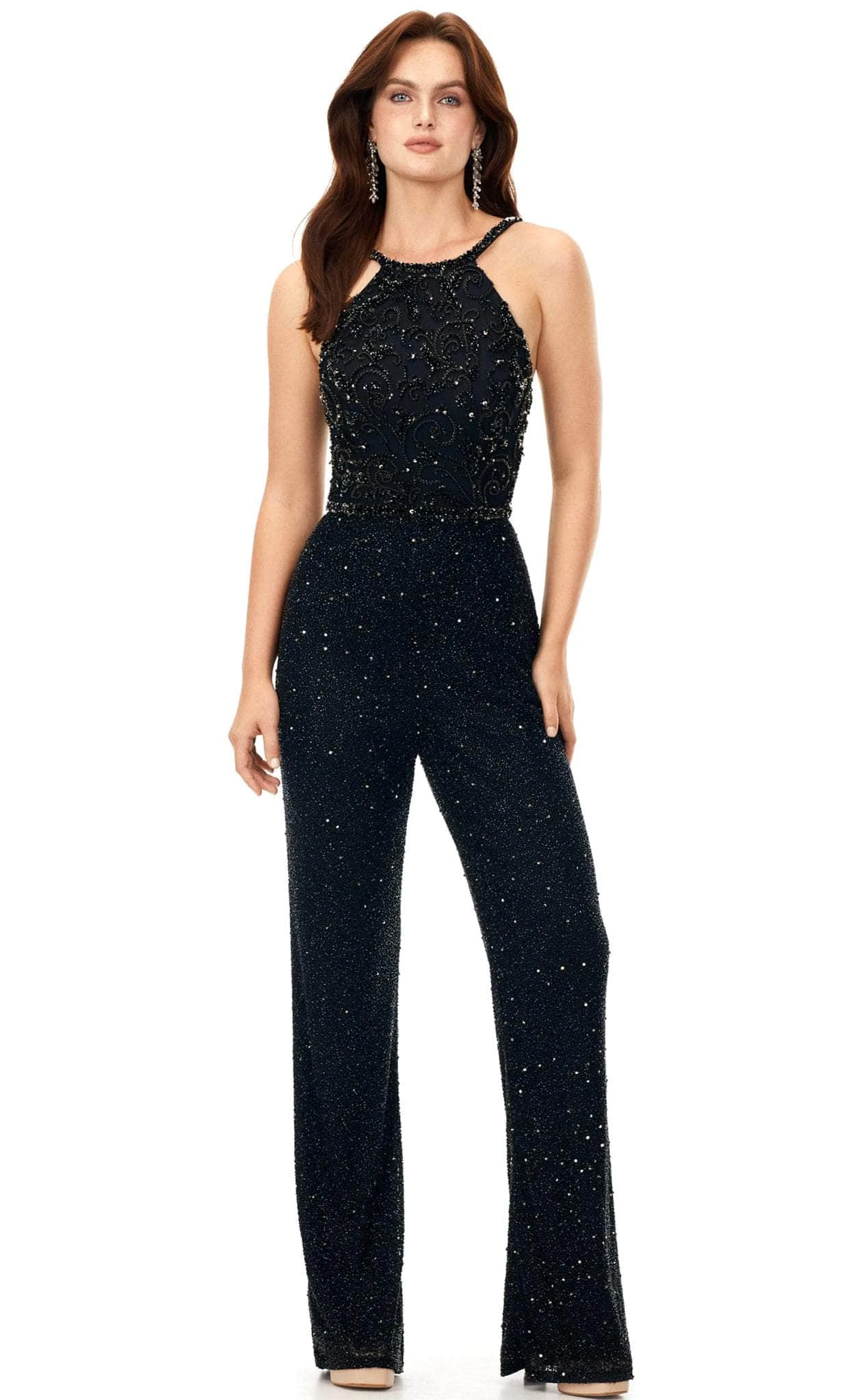 Take center stage in this glamorous Ashley Lauren 11339 design. You will achieve the next level of elegance wearing this gorgeous sequin jumpsuit flaunts a sleeveless bodice that is crowned with a halter neckline that will surely mesmerize everyone. The leg pants finish with a full-length hemline and the back reveals a cut-out accent and is secured with a back zipper closure. Wear this exceptional Ashley Lauren 11339 creation to dazzle the crowd. Models are wearing Black, Ivory and Lilac colors.