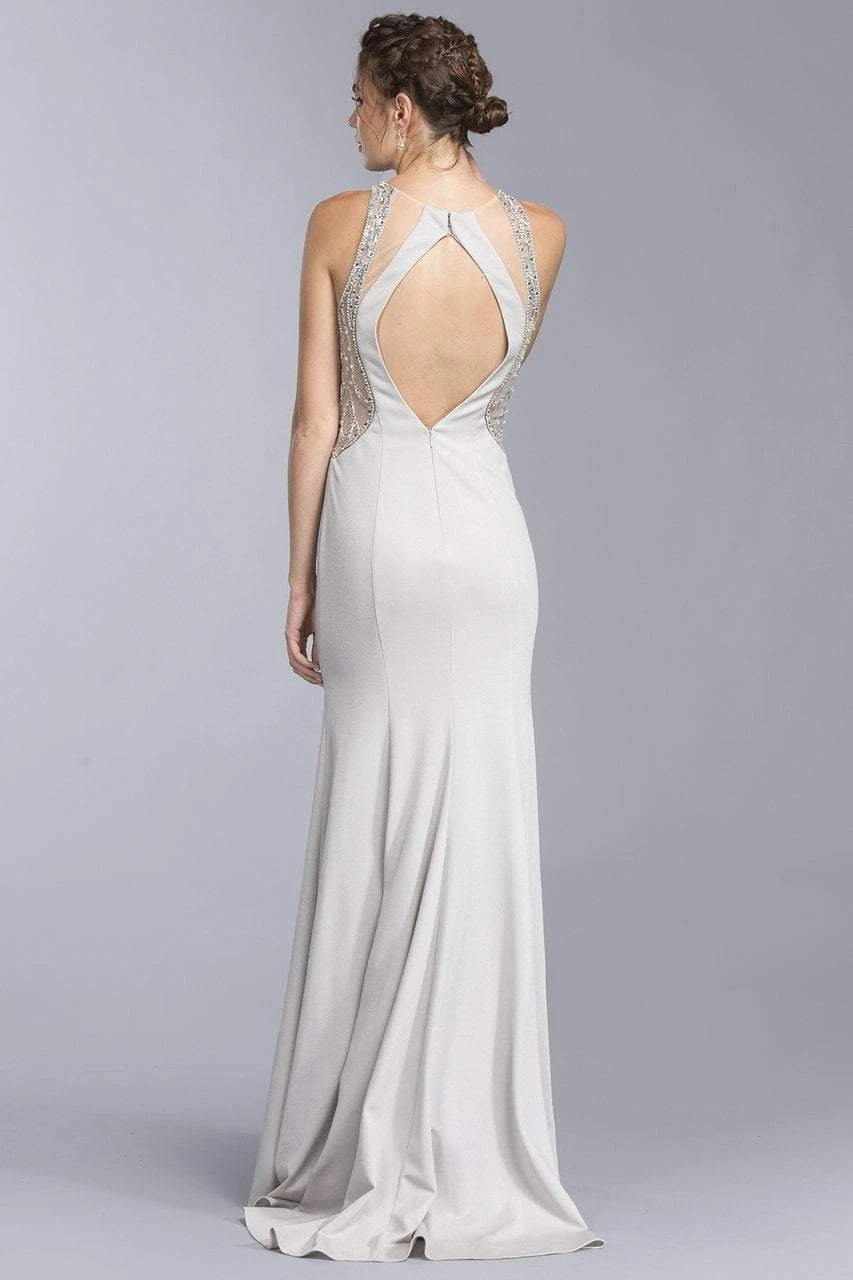 Achieve the next level of elegance in this dress from Aspeed L1944. Brandishes in a sleeveless, jewel neckline with fitted bodice made of shimmer fabric and styled with embellishments at its sheer side panels. The dress features an open back with a zipper closure while the skirt flourishes towards the floor in a fitted silhouette. You̢‰âã¢re sure to highlight your curves in this simple yet chic Aspeed dress.