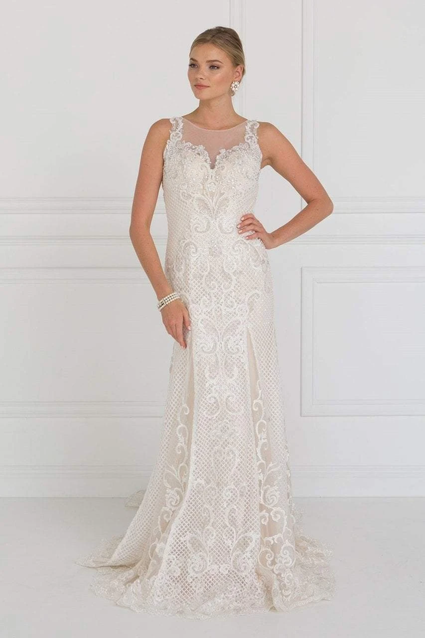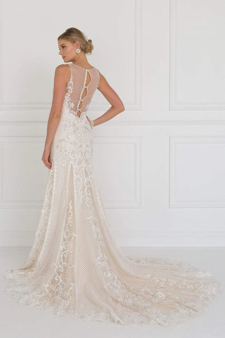 You will be the darling of the crowd as you sparkle with poise and sophistication in this glorious Elizabeth K GL1588 creation. Beautifully overlaid in a lattice and scroll embellished lace on a sculpted nude lining, this elegant piece flaunts a jewel illusion over a sweetheart neckline coupled with a sheer cutout back lined with fabric-coated buttons. Richly ornate with stunning beadwork, the sheath skirt subtly flares along the lower skirt to a floor-brushing court train. Set the style for an exceptionally luxurious evening in this opulent Elizabeth K masterpiece.