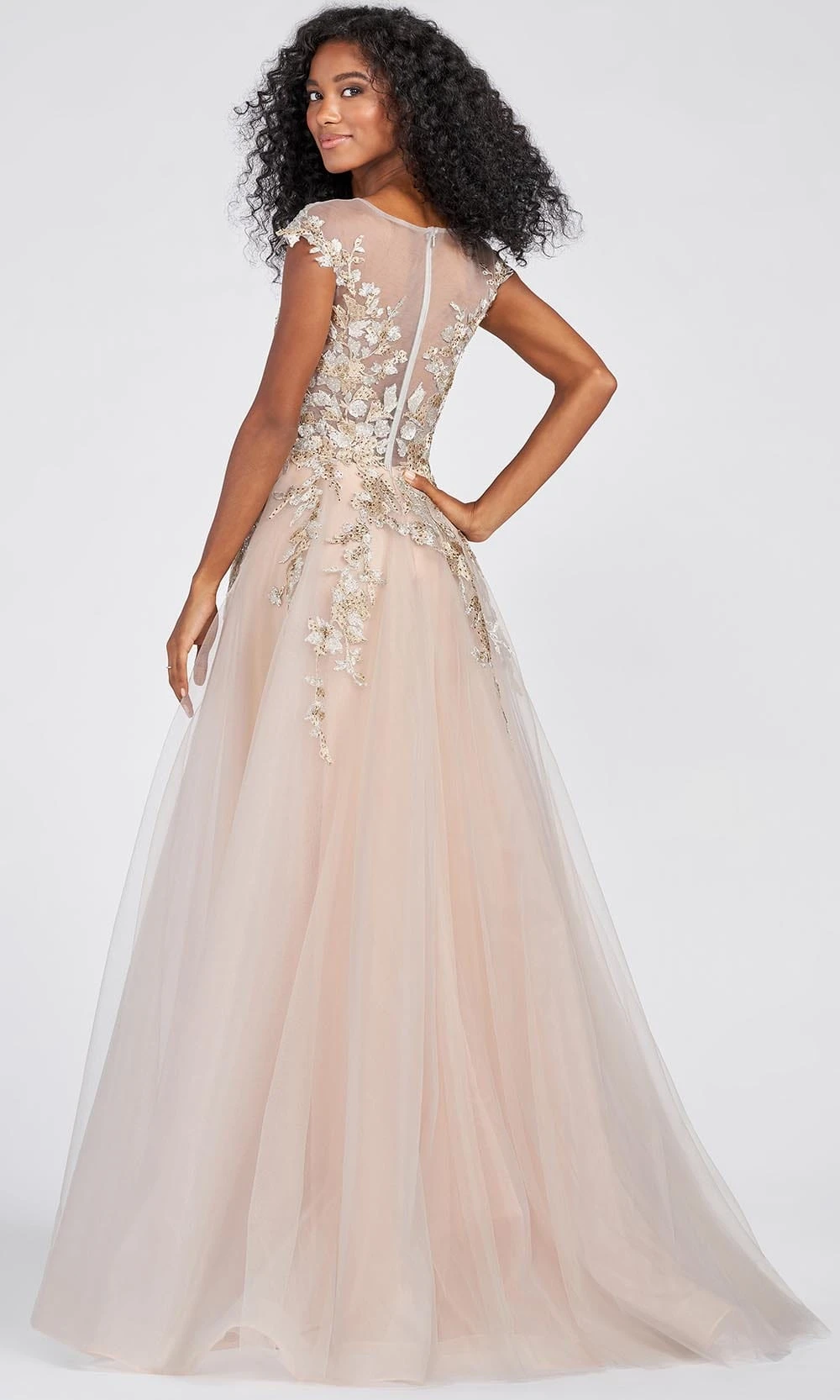 Bring a breathtaking new look in this stunning Ellie Wilde EW122096 on any event. The tulle overlay gown boasts exquisite pattern of beads lace appliques. Lavishly adorn its fit and flare silhouette, showcasing a sleeveless bodice with sheer yoke leading an illusion high neckline, with equally alluring sheer back with zipper closure. A full-length A-line skirt finishes off in a sweep train. Feel dainty and feminine in this enchantingly designed by Ellie Wilde. Whether your style is modern trendy or timeless classic, Mon Cheri will clothe with poise, elegance and grace for your momentous occasion.