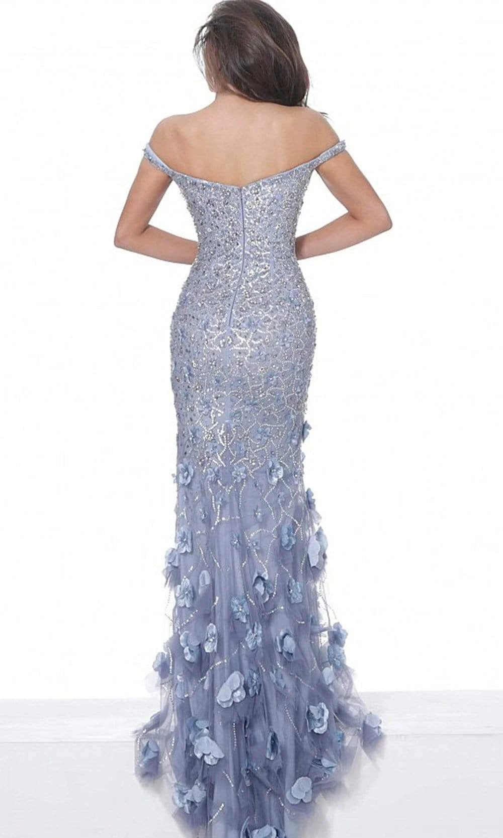 | Details: | Beaded, Off shoulder thin strap, Plunging neck, Mesh insert, 3D floral appliques, Lined, Invisible Back Zipper with Hook and Eye Closure |