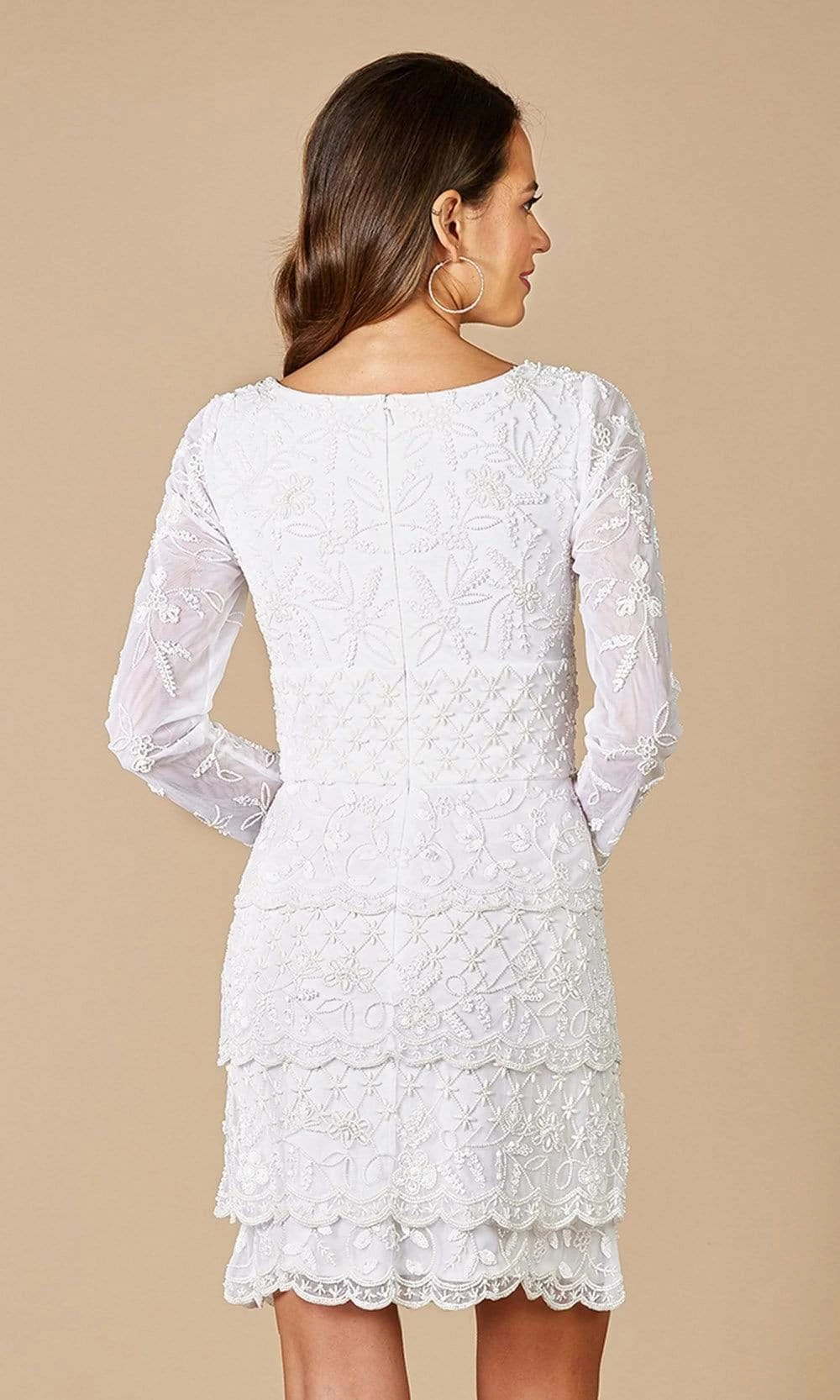 | Details: | Long Sleeves, Beaded, Tiered, Full Back, Back Zipper |