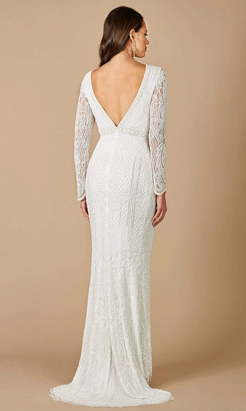 Show off your classy style when you wear this Lara Dress 50190. This textured beautiful long dress uses long sleeves and graces off V neckline matched to a V cut open back. It fits the wearer perfectly and parades a flowy full length column silhouette with a sweep train finish. Back zipper is used foe closure. Lara Dress will let you shine like the star that you are.