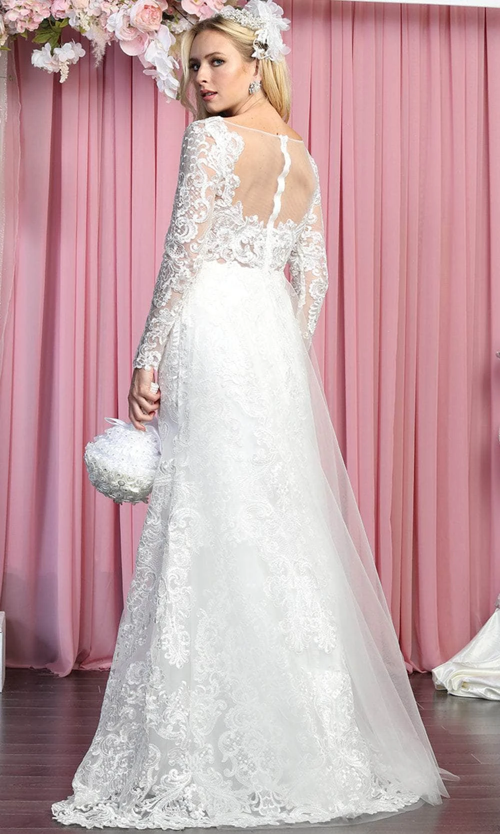 | Details: | Long sleeves, Appliques, Beads, Sheer, Lace, Illusion panel, Sweep train |