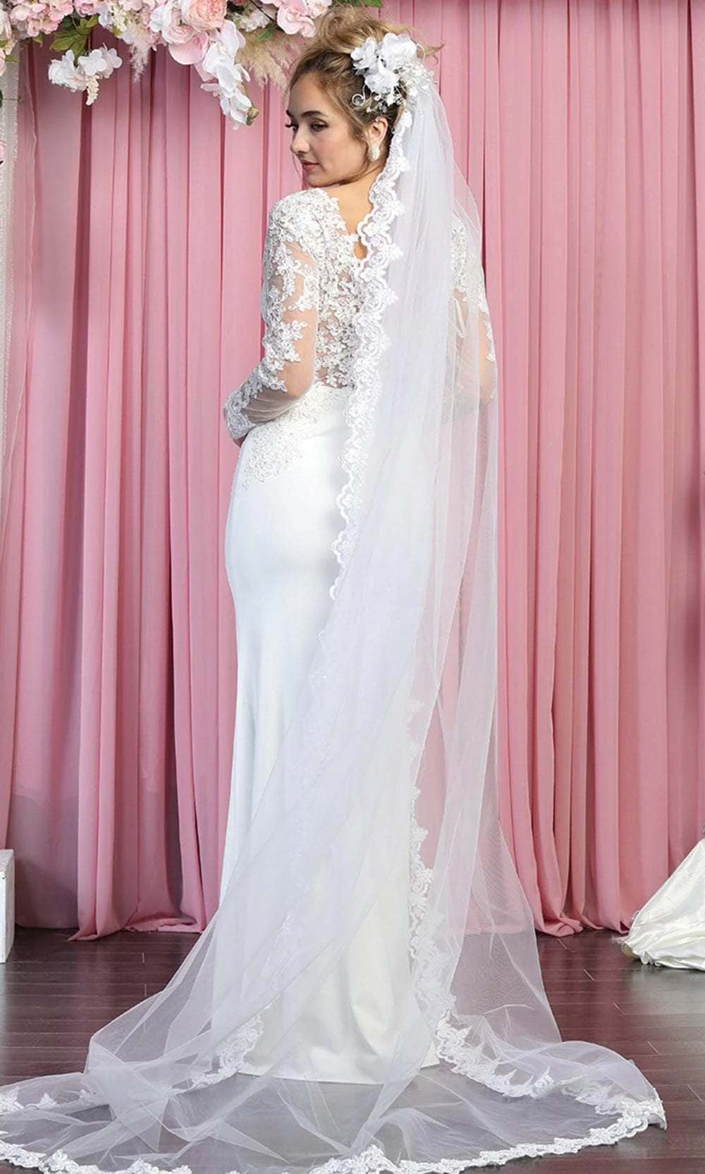 | Details: | Long sleeves, Appliques, Sheer, Lace, Illusion inset |