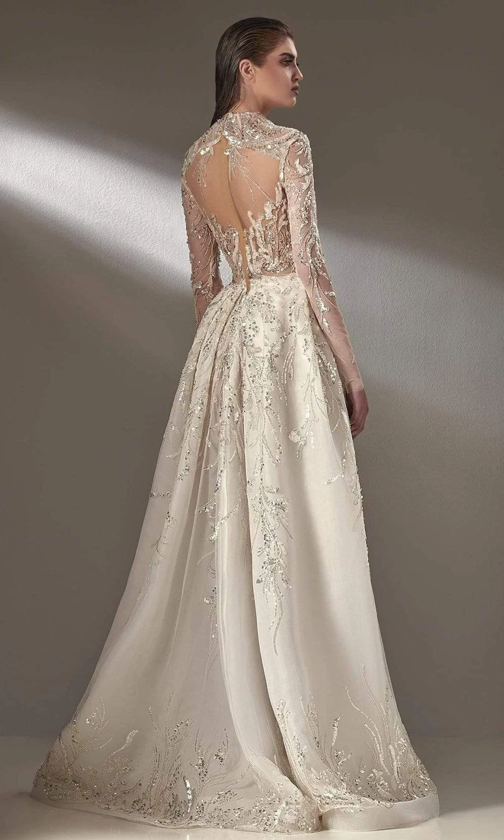 | Details: | Long Sleeves, Beaded, A-Line Overskirt, Full Length, Full Back, Back Zipper |