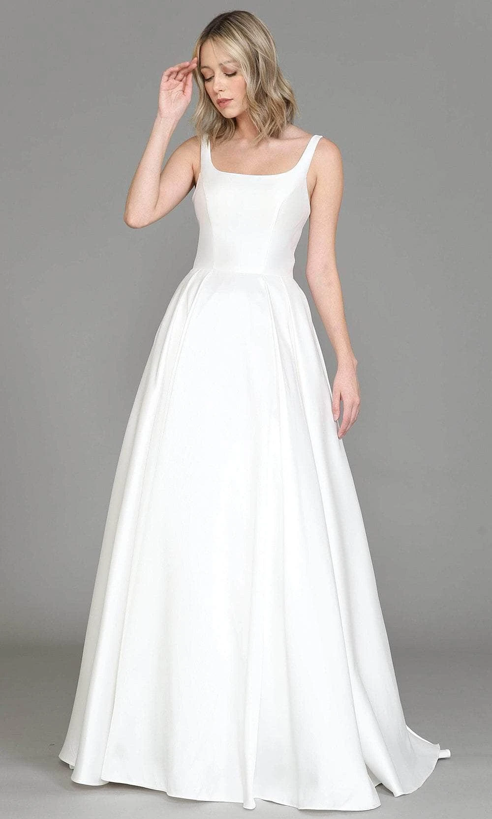 Look fantastic in the wedding photos that you will forever remember, with a beautiful gown from Poly USA 8528 creation. Be beautiful in this long gown that features a square neckline and is crafted with clean seams on a sleeveless fitted bodice. The back has a corset closure. The skirt has an A-line silhouette and is finished with a chapel train. This classy gown from Poly USA 8528 design will let you reminisce about your beautiful wedding day over and over. Models is wearing Off-White color.