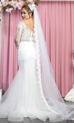May Queen RQ7894 – Long Sleeves Bateau Neckline Wedding Dress