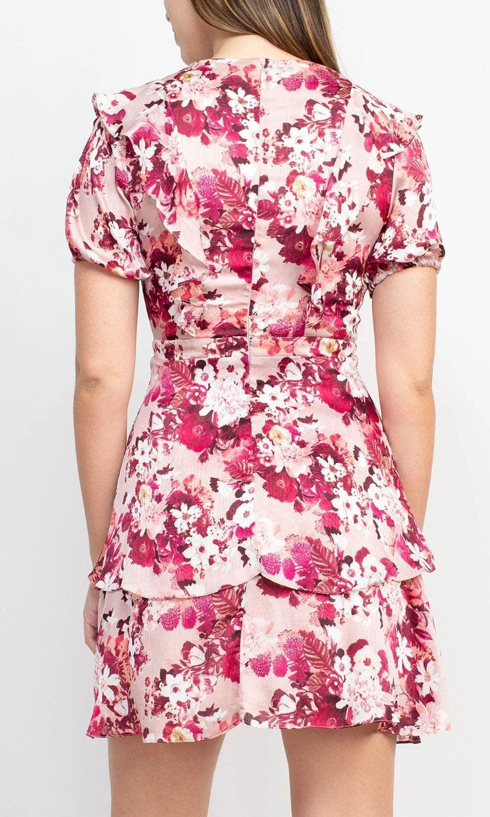 Emerge as a total stunner and bask in the limelight in this chic Sage Collective SU07D11 creation. Festooned with a stunning spectacle of blossoms ornamenting its length, this stunner shows off a jewel neckline and framed with short sleeves. Ornamented with double ruffled panels on the bodice and the full back. Tiers ornate the skirt as it cascades into a floral festooned A-line silhouette with a short hem. Flaunt a style that is stunningly feminine and sophisticated from all angles in this Sage Collective masterpiece. Model is wearing the Full Bloom color.